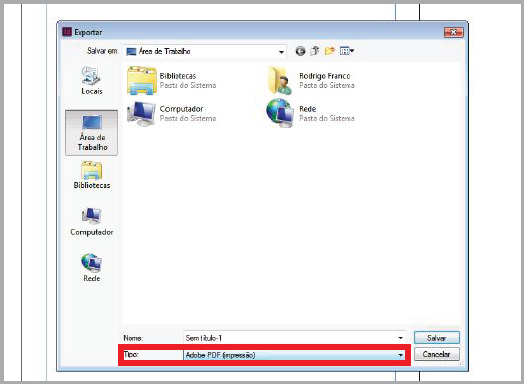 Na próxima janela, selecione o "Tipo" de arquivo "Adobe PDF (Impressão)"